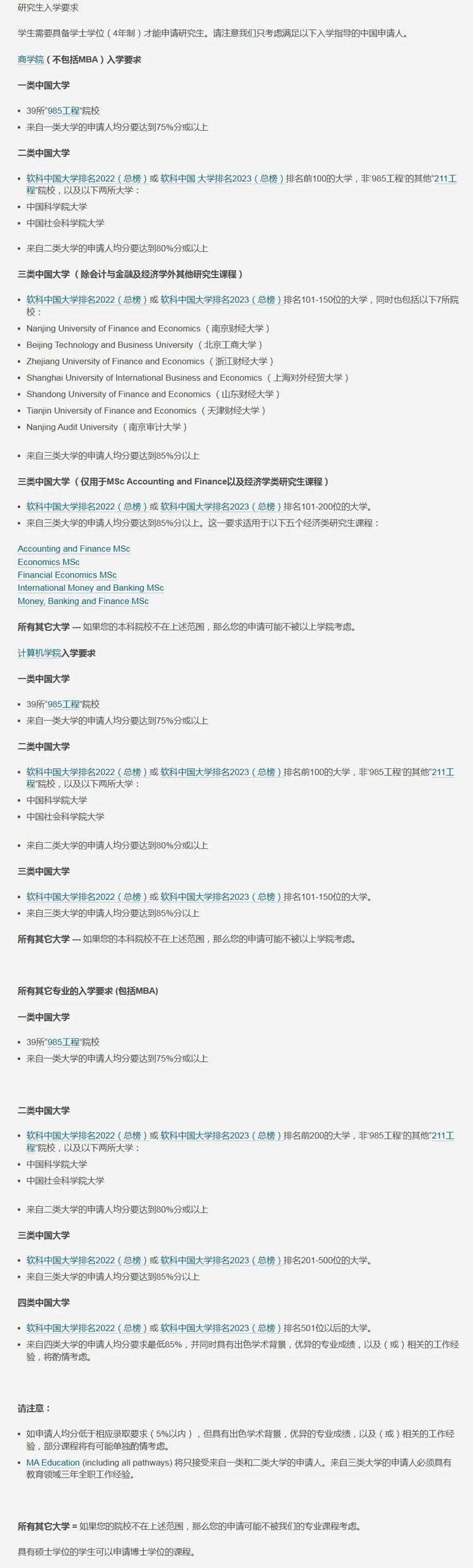 伯明翰大學已開放24年碩士申請,伯明翰大學也有自己的一套list要求。不過今年伯明翰大學對中國大陸學生的list清單進行了調(diào)整,主要變化有: